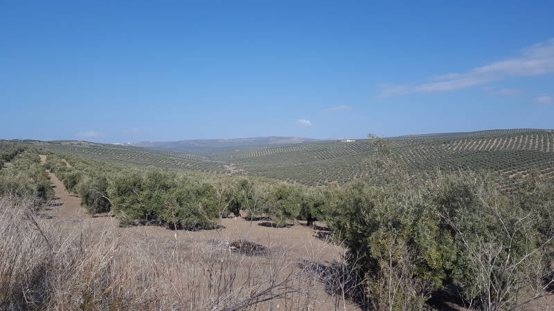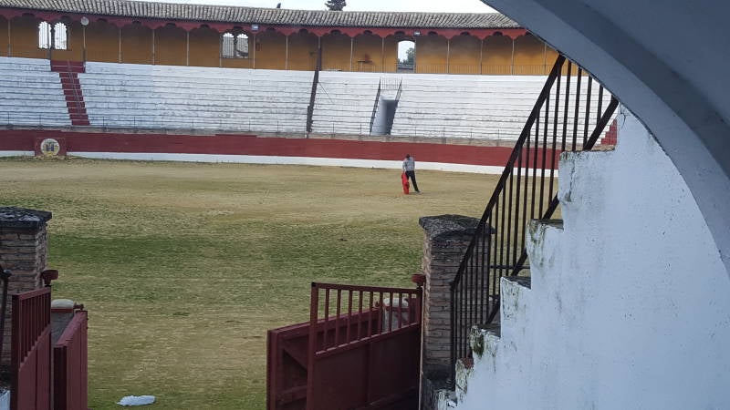 Zaterdag ochtend dachten we dat het niet mogelijk was om de honden goed uit te laten maar bleek dat we uitstekend met ze tussen de olijfbomen velden konden lopen voor 1,5 uur. In middag zijn we het plaatsje wezen bekijken. Het is een mooi oud plaatsje en staat op de Unesco lijst van Wereld erfgoed. Er zijn busladingen met Spaanse toeristen. Wijntje/pilsje met een gratis tapas in een leuk bruin café genuttigd voor het wereld bedrag van € 3,60. Aan het einde van de middag nog even naar gratis museum van stadion voor ons geweest en kregen begeleiding en uitleg van een vriendelijke dame die ons van alles versteld in Sp-Engels. Ook was de Matador aan het oefenen. In mei is het eerste gevecht weer.