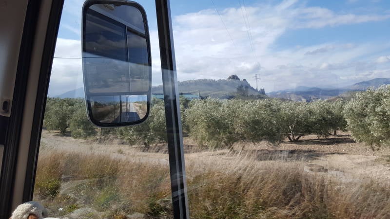 Zondag 19-2 zijn we naar Ubeda gegaan wat ook een mooi oud stadje moet zijn, maar was zo druk dat we nergens onze camper konden parkeren dus zijn we maar doorgereden. De tocht was echt geweldig door eindeloze olijfbomen veldenvoor ruim een uur rijden. Daarna nog een mooie rit door de bergen over smalle wegen. Alleen jammer dat het weer toen minder werd. Halverwege de middag kwamen we met druilerig en koud weer (7gr) aan op de CP in Pueblo de Don Fadrique. Deze plaats noemt zich zelf de Poort van Andalusië want een paar kilometer verderop begint de provincie Murcia. Maandag zijn we naar Archena gereden. We hebben onderweg veel velden met in bloei staande witte en roze amandelbomen gezien. Maar ook andere fruitbomen. Later zagen we in de buurt van Murcia weer vele citroenbomen. Archena ligt aan hetzelfde riviertje, Rio Segura, waar we ook aan stonden op de heenweg toen we in Murcia voor een week stonden. Omdat het mooi weer was hebben we besloten 3 nachten te blijven maar het zijn er 4 geworden omdat we een wasserette gevonden hadden en we toch nog even een was wilden doen.