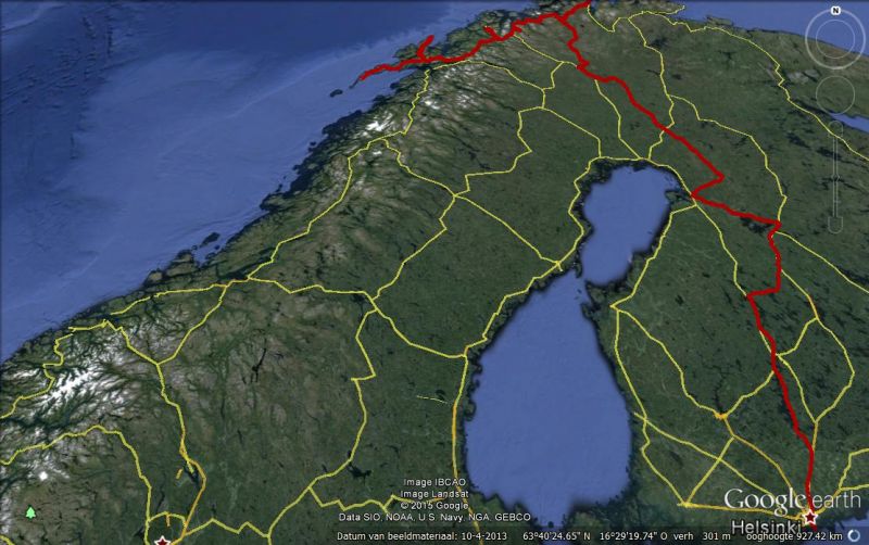 Na HELSINKI via enkele route gedeeltes uit "mit dem WOMO nach Finnland" richting het noorden. Gaan ook even op de koffie bij de KERSTMAN in ROVANEMI. Daarna verder omhoog. Langs de de Zweedse grens en daarna NOORWEGEN in. Opweg naar de NOORDKAAP. We moeten wel weer een stuk terug rijden om naar de LOFOTEN te gaan.