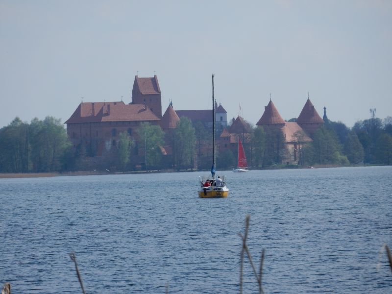 5 mei zijn we na onze laatste Zlotys gebruikt te hebben voor een paar liters diesel, We waren om 13.00 op de camping van Trakai. Maar omdat het in de Baltische staten 1 uur later is, dus 14.00. was het te laat om nog naar het kasteel te fietsen, dus met honden maar lekker lang gewandeld. Het Kasteel was in de verte aan andere kant van het meer te zien. We gaan morgen op weg naar Vilnius wel kijken bij het Kasteel.