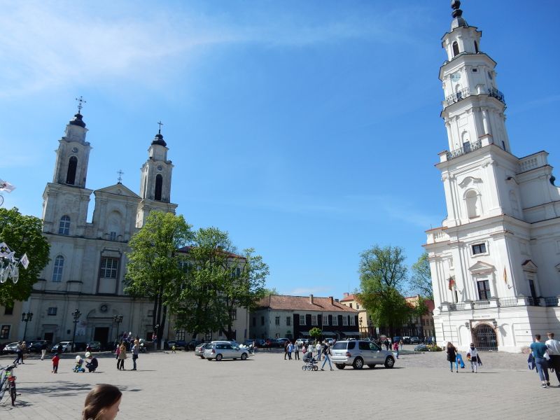 De volgende dag zijn we naar (via een groot shopping center) Kaunas gegaan. Op de camping eerst een dubbele was gedaan (was zo droog door zon en wind) en wat onderhoud aan de ijskast omdat hij niet goed koelde. In de vroege avond een stuk langs het meer gelopen waar we aan stonden. Op zaterdag hebben we de 6,5 km overbrugd per fiets naar de centrum van Kaunas. Was een gezellige stad omdat er 2 verschillende markten waren en door het mooie weer (strak blauwe lucht en 23gr) het gezellig druk was in de stad. Vandaag geen kerken bezocht, gewoon wat rond gelopen en genoten van het mooie weer.