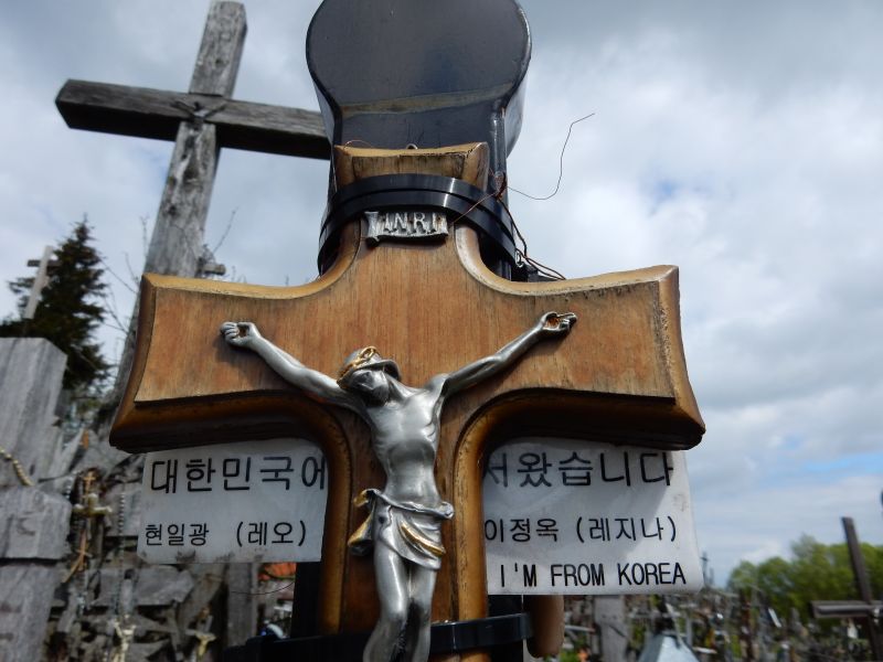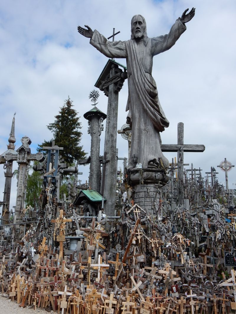 De volgende dag na ons gebruikelijke uurtje honden utlaten opweg naar de parkeerplaats bij de Berg der Kruisen in Domantai hebben daar ook overnacht. De eerste kruisen werden in 1831 geplaats na een onderdrukking van eenopstand tegen de Russen. Er kwamen er meer en meer maar de Russen hebben in 1961 de berg totaal leeg gemaakt. Maar de eerste kruisen kwamen al weer snel. In 1973 en 1975 is het nogmaals leeg gehaald. Daarna werd het met rust gelaten. Nu staan er kruisen die vanuit de hele wereld gebracht zijn oa uit Korea.