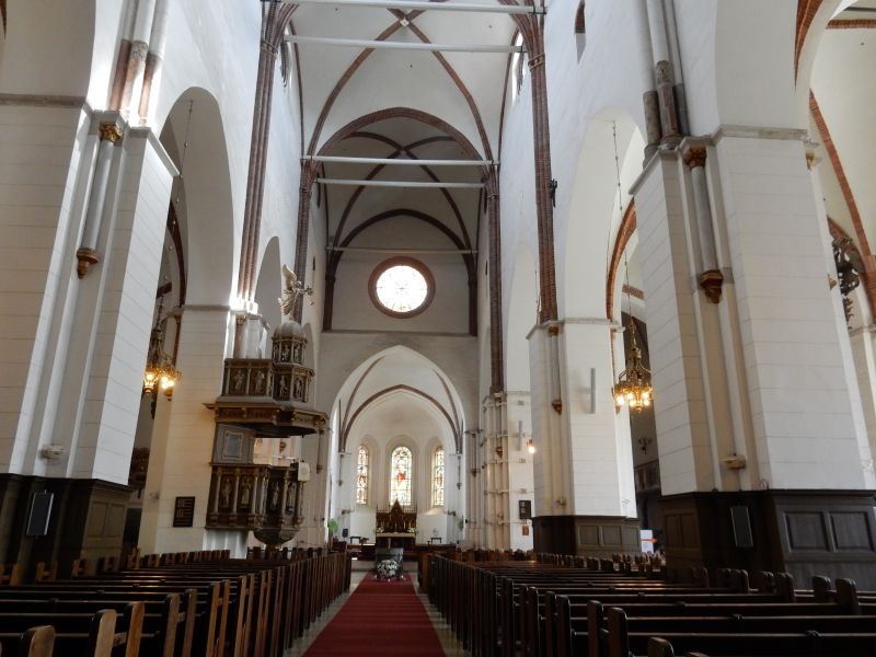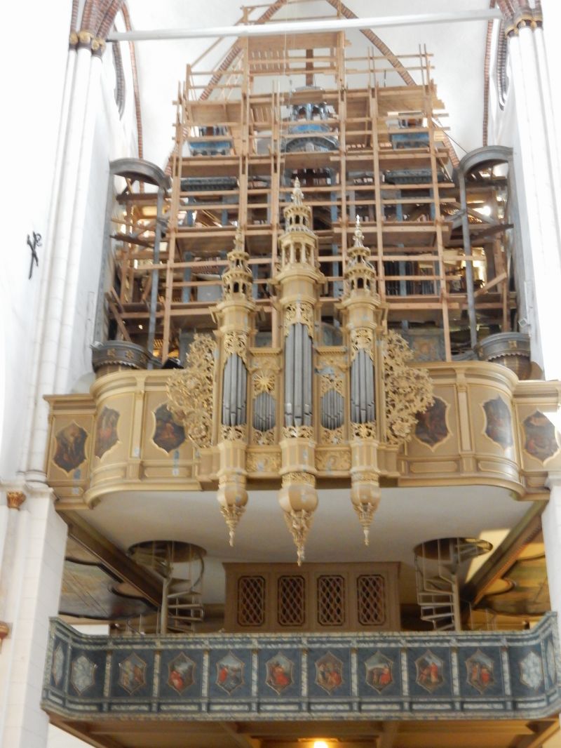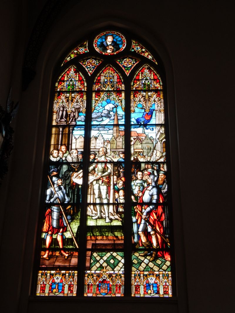 Kathedraal met mooie glas in lood ramen en een heel aparte orgel