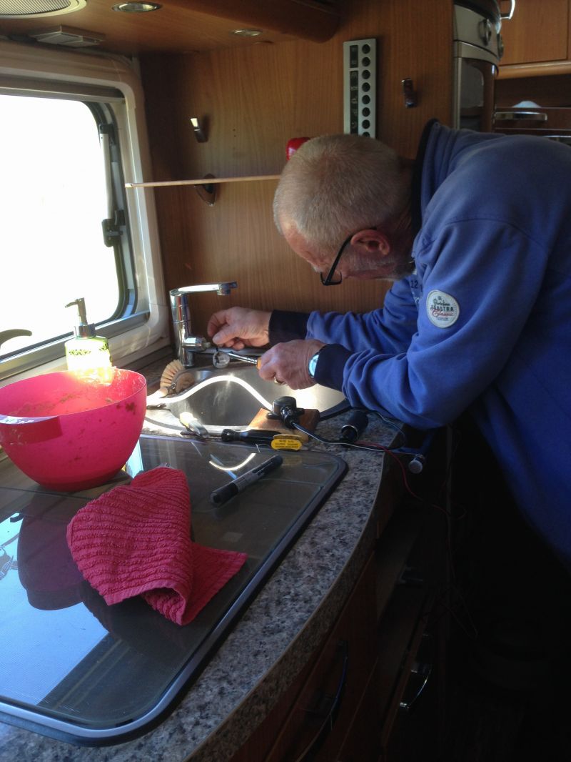 De volgende morgen was het wederom volop zon maar koud dus nog steeds in de winterjas met de honden voor 1:45 rondgelopen langs kust en het park. Ook was er een begraafplaats sinds 2002 voor de Duitsers die in de laatste slag in WOII gevallen waren hier.Daardoor gingen we pas laat weg. Het eerste stuk vlak langs de kust was echt mooi. Omdat we geen winkels tegen gekomen zijn we eerst naar het plaatsje Vosu gegaan voor brood voordat we naar de camping verderop gingen. Vosu is een schitterend houten plaatsje. Op de camping heeft Ger een (eigen) brood gebakken en heb ik de kraan van de keuken gerepareerd. Was intern een draad doorgesleten. Leve de 12V soldeerbout die ik al jaren bij me heb.