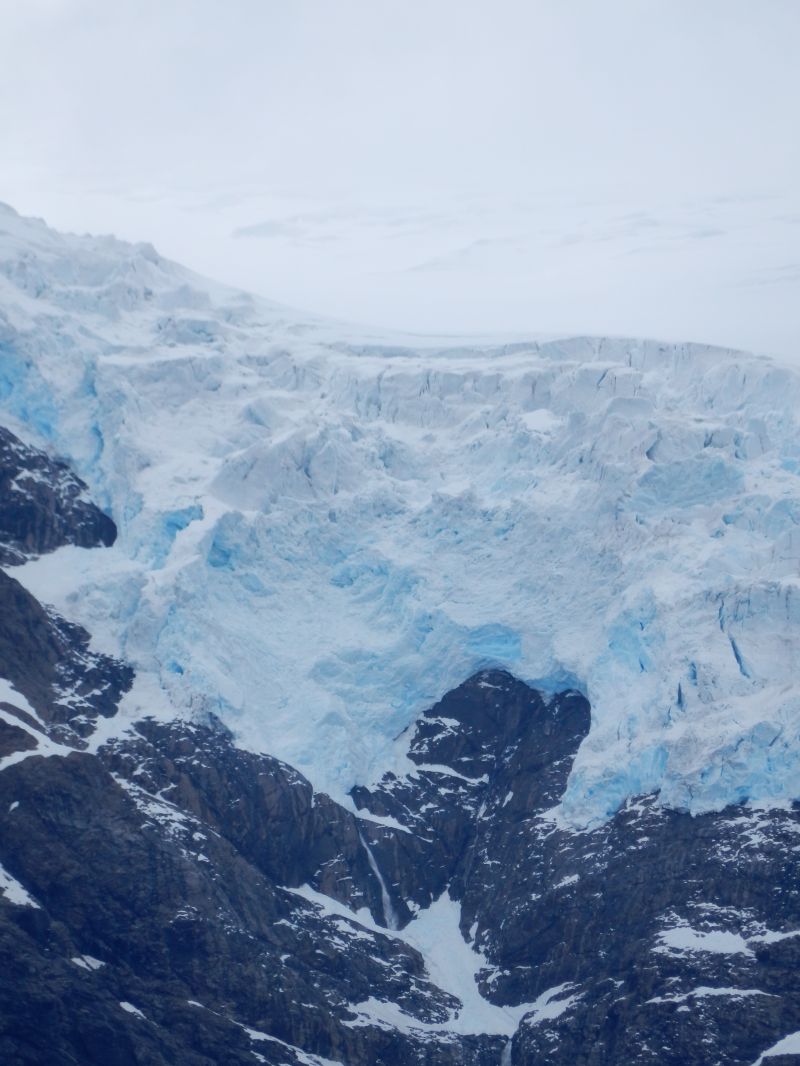 Ons zicht op de gletsjer aan de Oksfjord vanuit de camper.