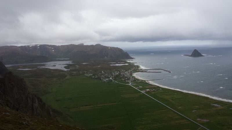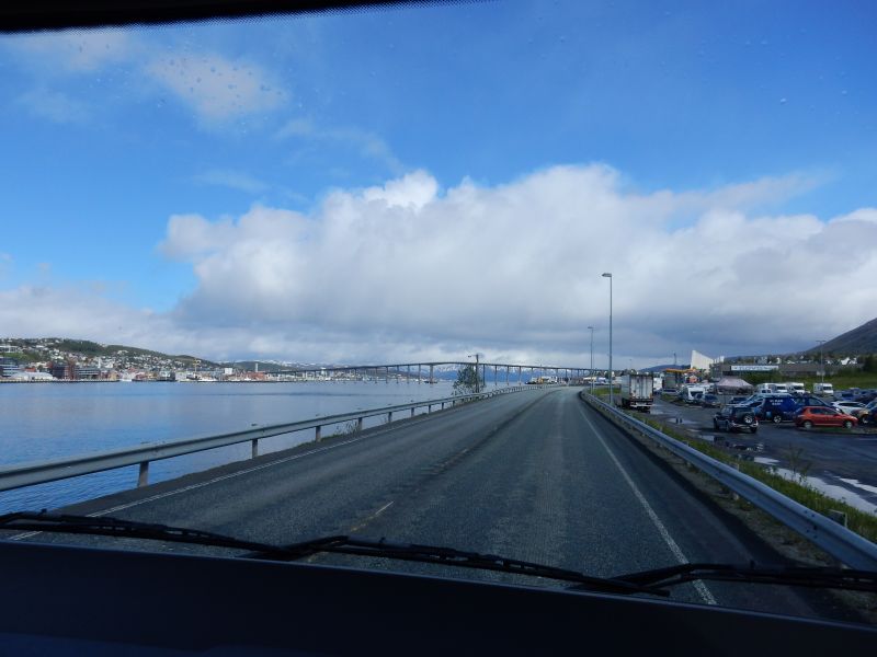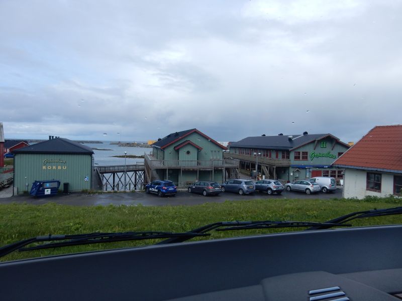 Woensdag zijn we naar Harstad gereden en daar ff rondgelopen en gewinkeld. Daarna door naar de veerboot, moetsen 45 min wachten wat was net weg en waren daarna in 20 min aan de overkant. Achteraf hadden we net zo goed om kunnen rijden vwb tijd maar zeker voor de kosten. Hebben eigenlijk we bijna de hele dag regen en af en toe droog, We hadden een camping in Andenes gepland maar daar aangekomen mag je het geen camping noemen voor € 20,- dus door gereden naar het centrum. Daar op een parkeerplaats gestaan en wat rond gekeken zolang de regen ons toe liet. daar ook gegeten, maar overnachten mag niet. We zijn terug gereden naar een parkeerplaats even voor Andenes om te kijken of dat wat voor de nacht is. PRIMA stek. Er komen alleen hier (vooral vrouwen) die trainen met een berg op te lopen zelfs in de harde regen en geloof me dat is niet niets. Dat kunnen we uit eigen ervaring zeggen.