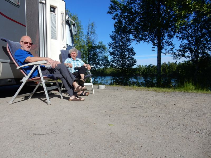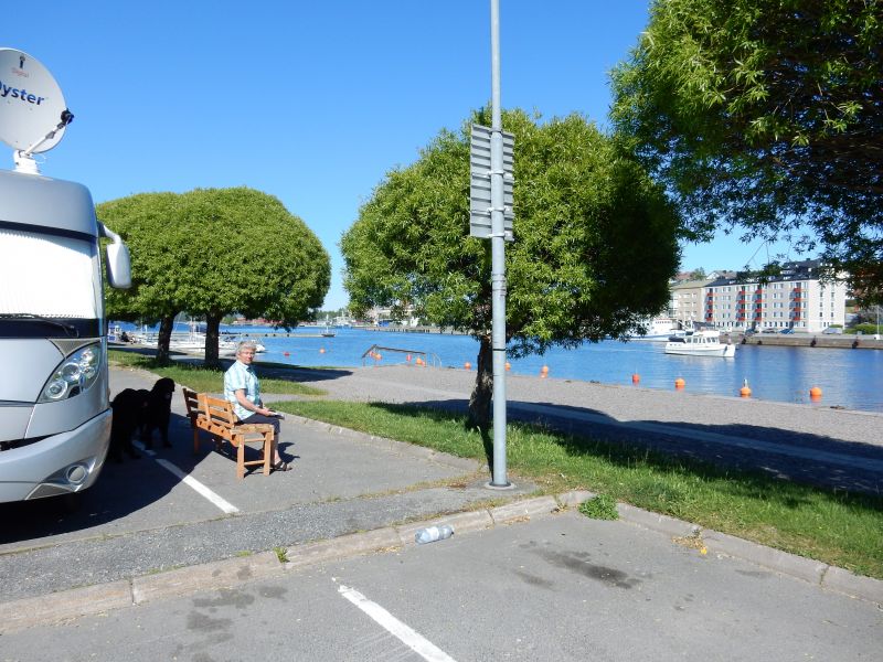 Zaterdagmorgen hebben we eerst weer eens extra lang met de honden langs de rivier gelopen. Daarna zijn we eerst naar centrum gereden om de zaterdagkrant te downloaden en bij benzine station water in te nemen. Om 11:00 reden we langs de kust richting zuiden. Onderweg bij een picknick plaats konden we legen en hebben we in Nordmaling bij een open supermarkt brood gekocht.