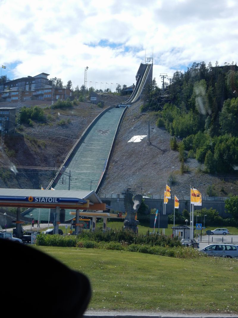 We zijn langs het Vättern meer (Vättern=water) gereden en zijn even gestopt in Hjo wat een vissersdorp is. Was er erg druk maar wij vonden het tegen vallen, dus na het eten meteen door naar Jönköping aan het zuiden van het meer. Maar we moesten op de snelweg plotsklaps stoppen omdat er auto's stil stonden. Er liepen nl 5 paarden op de weg en ze hadden geen zin om weer de kant in te gaan. ze bleven lekker grazen langs en op de weg.