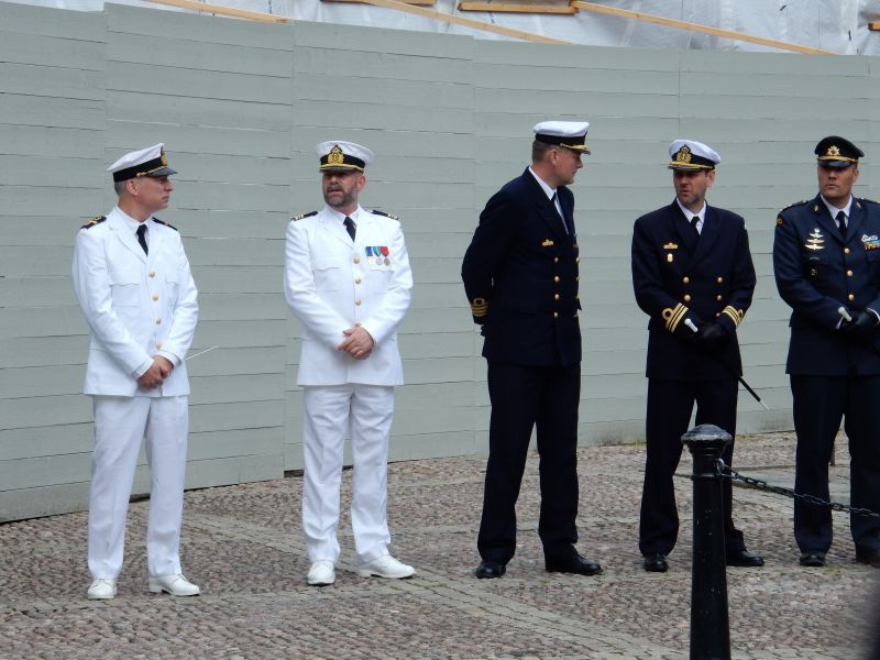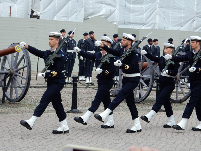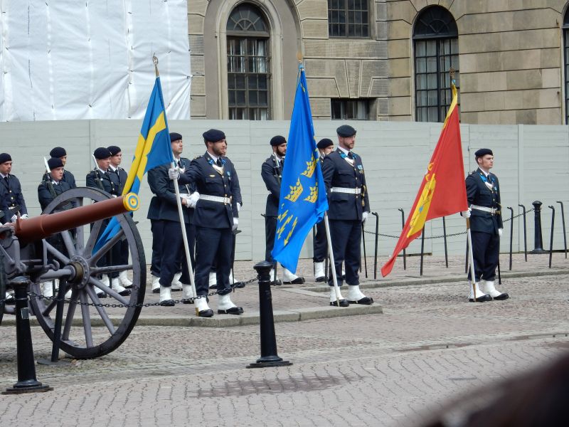 Na eerst 1,5 uur met de honden langs de rivier en Kongpark te hebben gelopen zijn we het oude centrum Gamla Stan gaan bekijken. Als eerste hebben het wisselen van de wacht gevolgd. Het begin was een toeristisch toneelstukje opgevoerd door een stel officieren over de structuur van het Zweedse leger en dat je het paleis kan bezoeken en waar de tickets te verkrijgen waren.